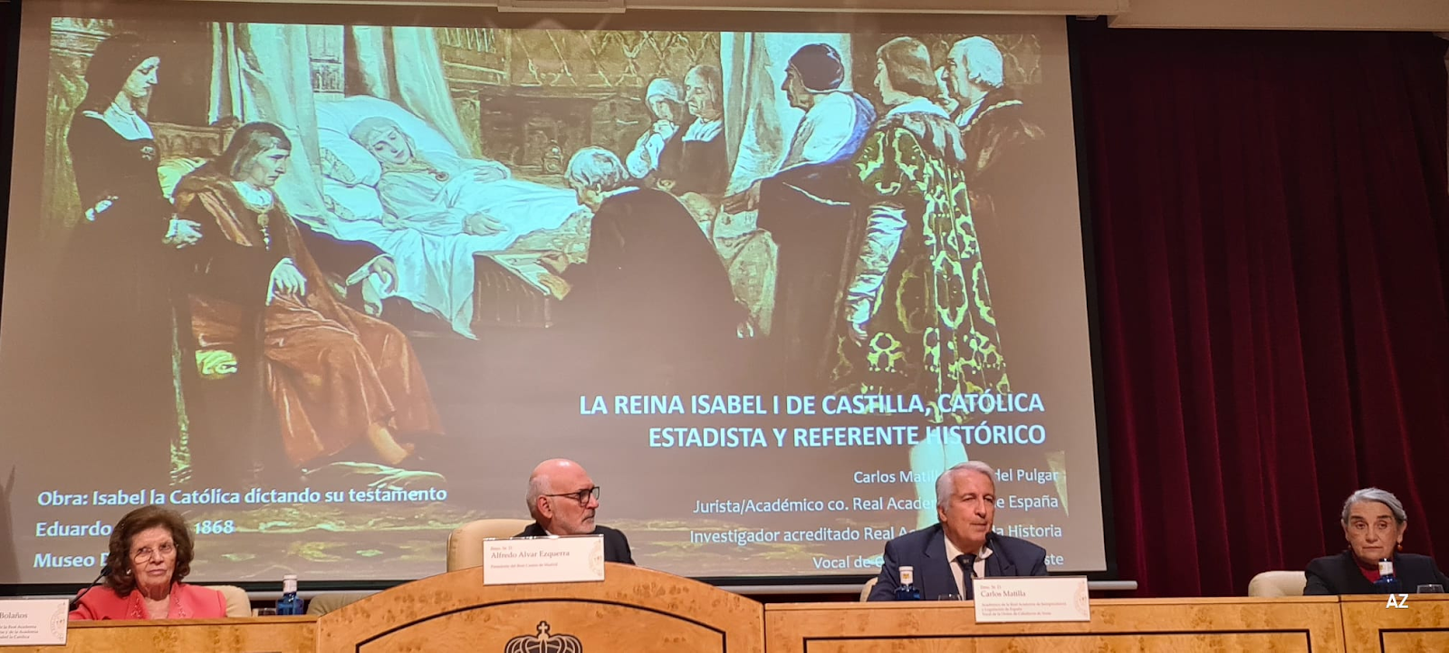 12/1/24 .- Madrid .- Isabel I de Castilla, Isabel la Católica, título que le otorgó, junto a su marido Fernando de Aragón, el papa Alejandro VI, su evangelización de América y el proceso de beatificación en marcha, fueron temas de la conferencia y del Libro de Actas del Congreso poor la Comisión Diocesana de Valladolid para su beatificación.