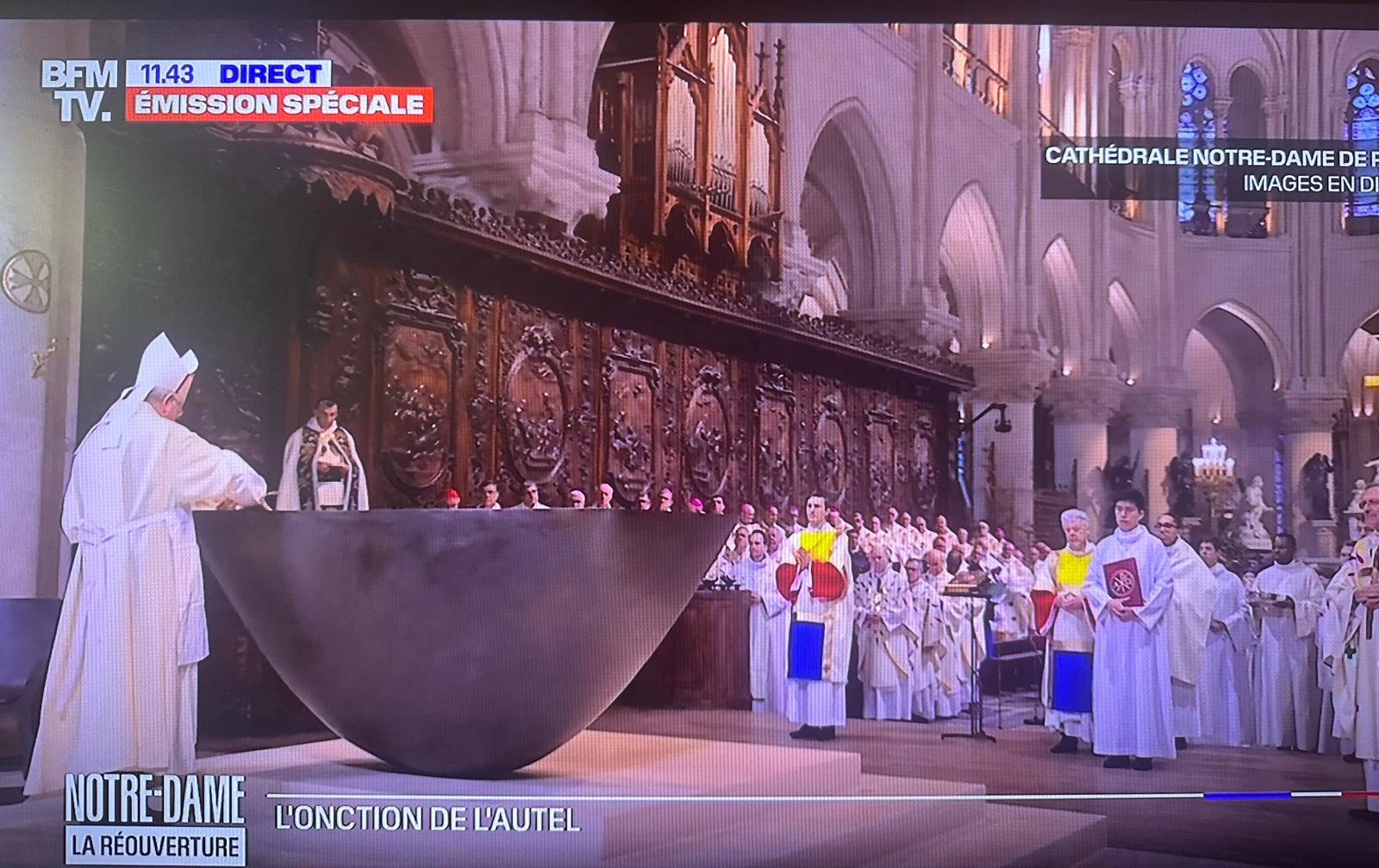 CUCHI DE OSMA: Que tarde tan buena pasé , viendo la ceremonia solemne de la gran Notre Dame . Que esplendor !!! me llamó la atención el colorido de las capas o palios del arzobispo y obispos tan vistosos , parecían un cuadro de Mondrian . Fue un acontecimiento que nadie debió de perderse .EMO CIONANTE